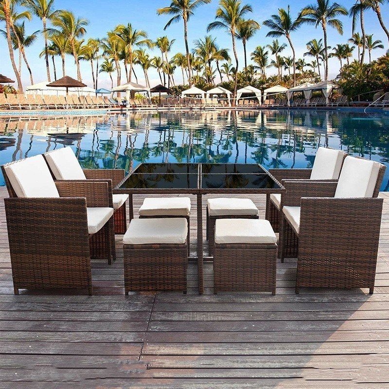 Al dettaglio Prezzo adeguato Top Quality Outdoor Rattan Wicker Mobili Giardino Tavolo con popolare sedia da giardino a doppio uso